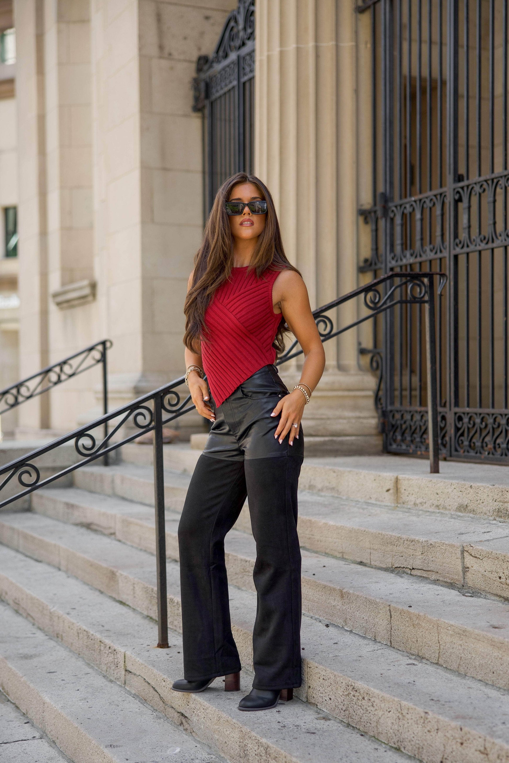 We recommend sizing up for a more effortless and flattering fit with these sleek pants.