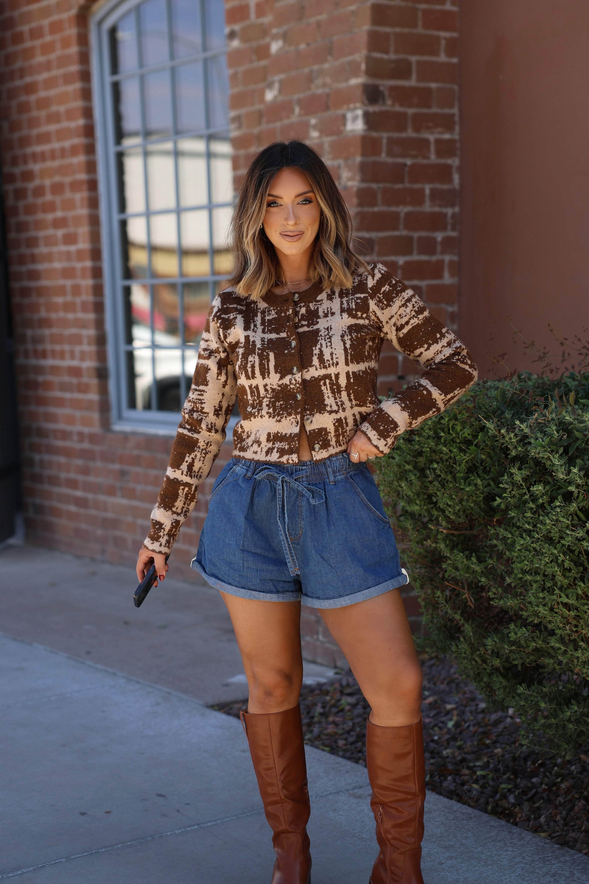 Keep cozy and stylish with our Brown Abstract Print Cardigan. Featuring button closures and an eye-catching abstract print. this cardigan is the perfect addition to your wardrobe. Perfect for any occasion. it will keep you warm while making a statement. Stay fashionable and comfortable with this must-have piece.
