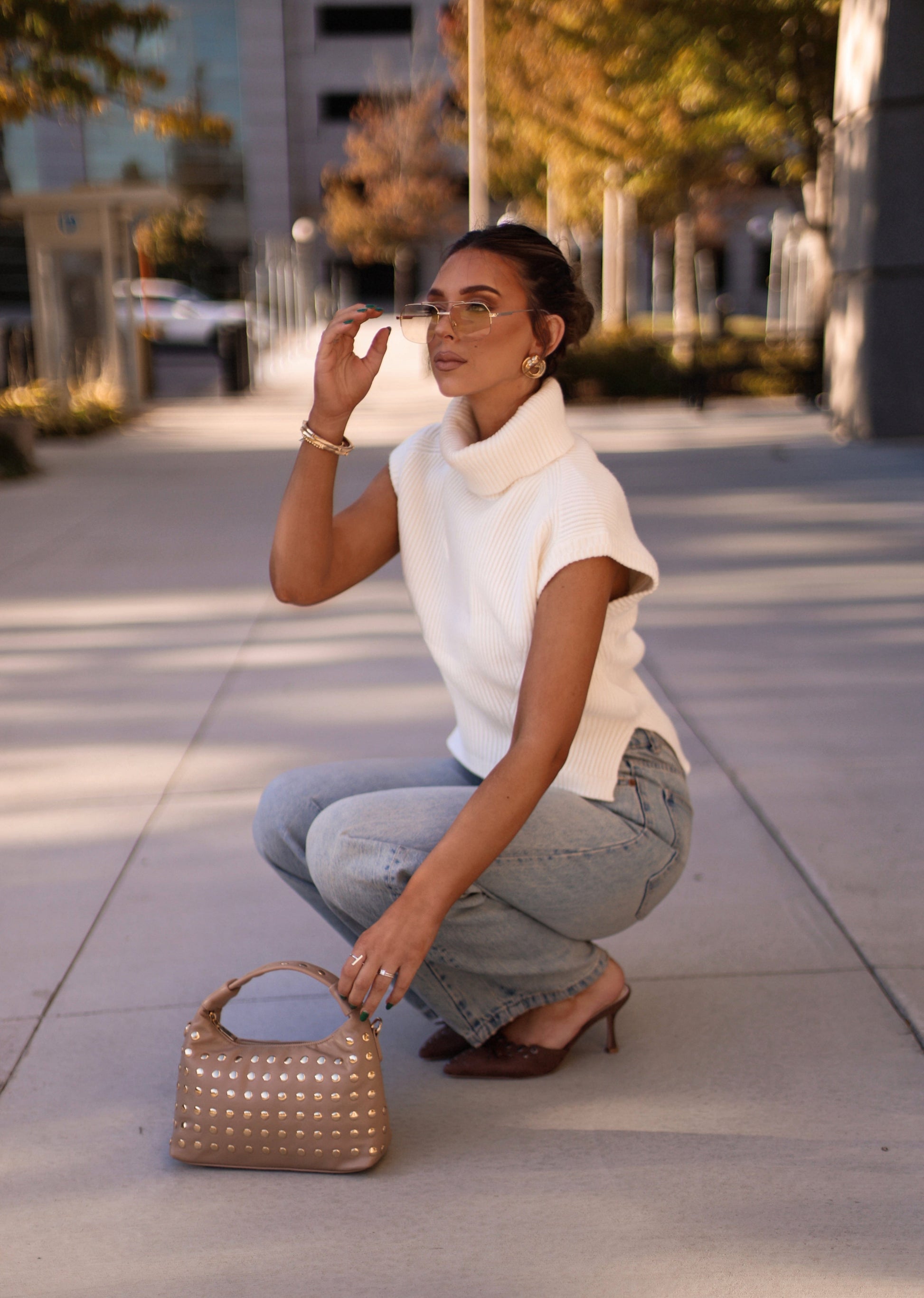 Elevate your wardrobe with the Carmen Classic Sweater Vest. Made with a cozy turtleneck and ribbed details. this short-sleeve sweater vest combines comfort and style for a timeless look. Perfect for layering or wearing on its own. it's a versatile piece that will elevate any outfit.