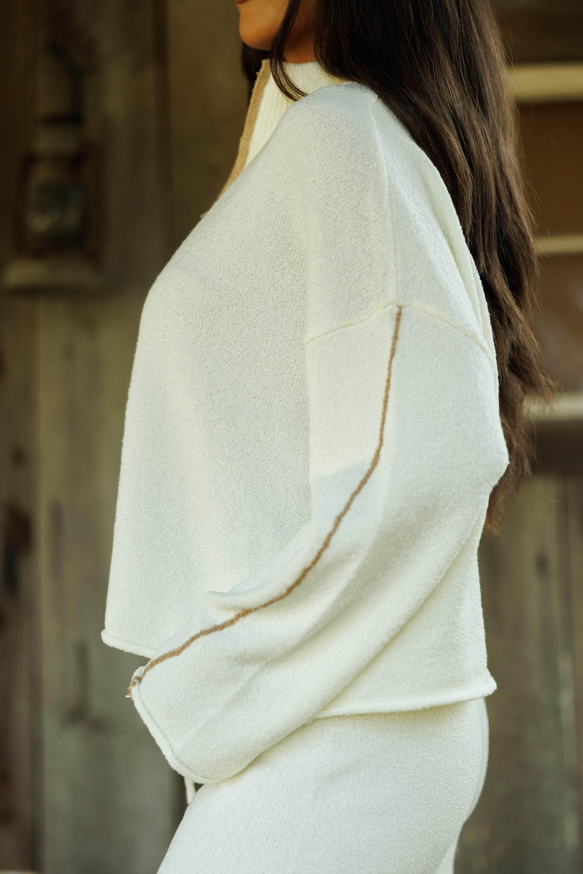 Meet your new cozy companion: the Chalet Knit Pullover! With its soft. relaxed fit and playful cropped cut. this sweater brings comfort and style together effortlessly. The zip-up mock neck with contrasting trim adds a fun twist. perfect for layering or wearing on its own. Stay comfy. look cool!