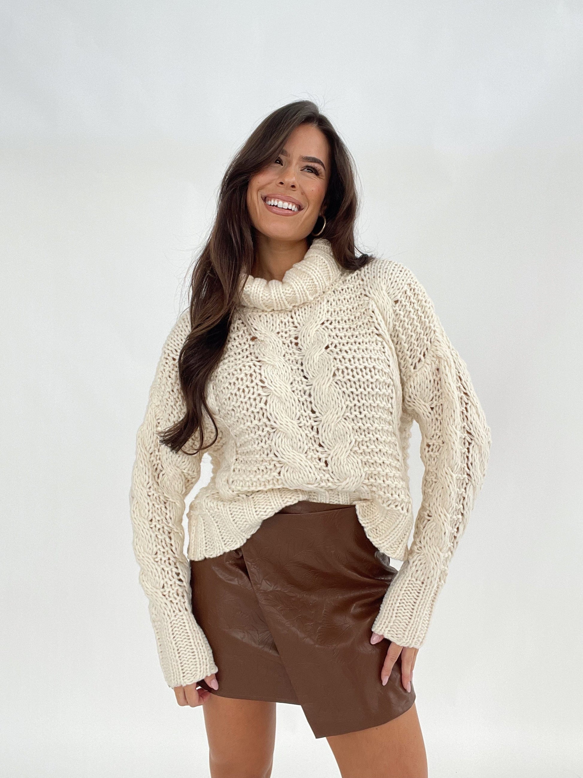 Experience ultimate comfort with our Chunky Cozy Sweater. Made with a loose. chunky knit and thick material. this sweater will keep you warm and stylish. Featuring a turtleneck for added coziness. it's the perfect addition to any fall or winter wardrobe.