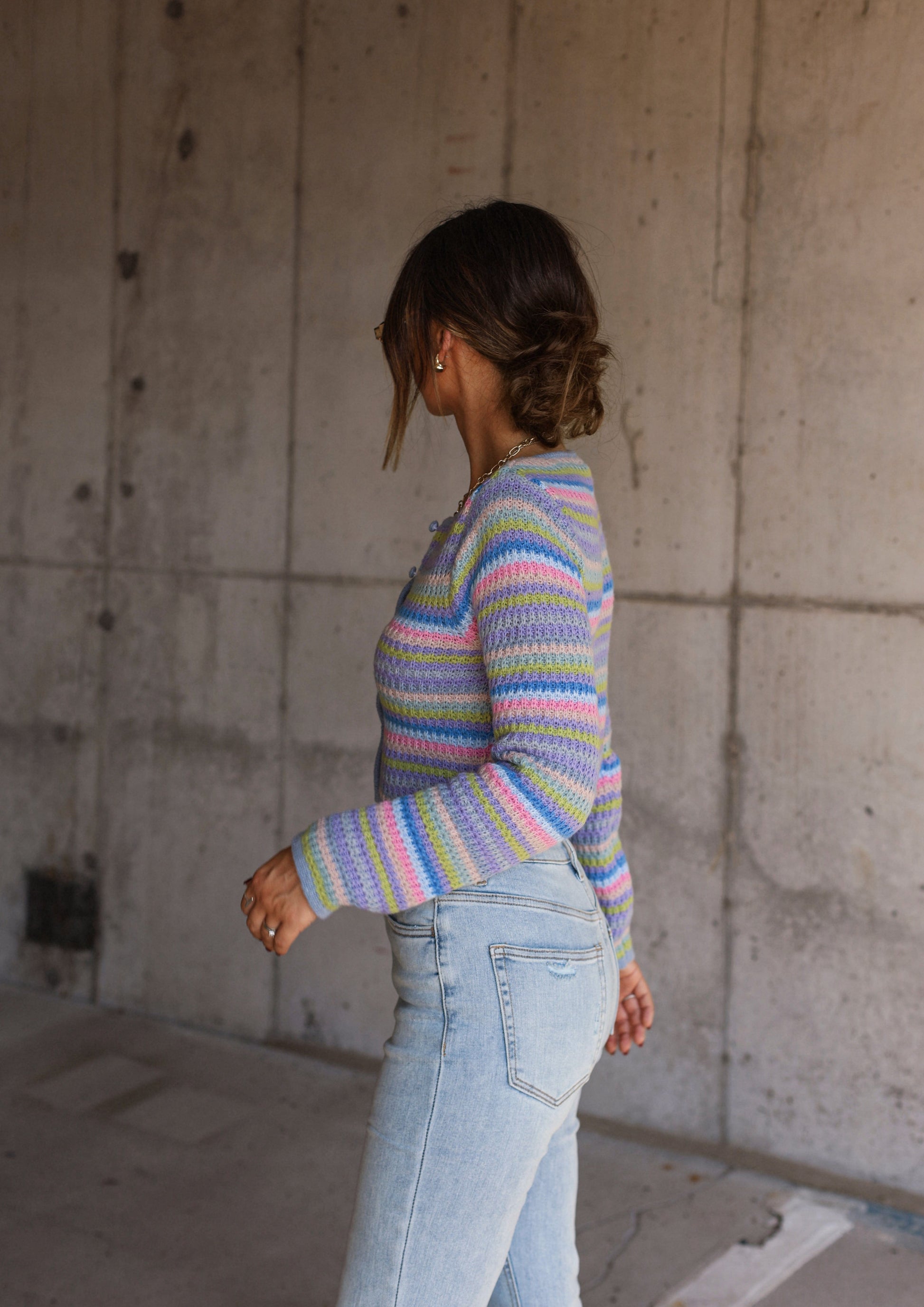 Our Color Blend Sweater is a versatile addition to your wardrobe. With its button up design and long sleeves. it can be easily styled with jeans. shorts. or even a dress. Its endless styling options make it an essential piece to add to your closet. Reform your look with this must-have sweater!