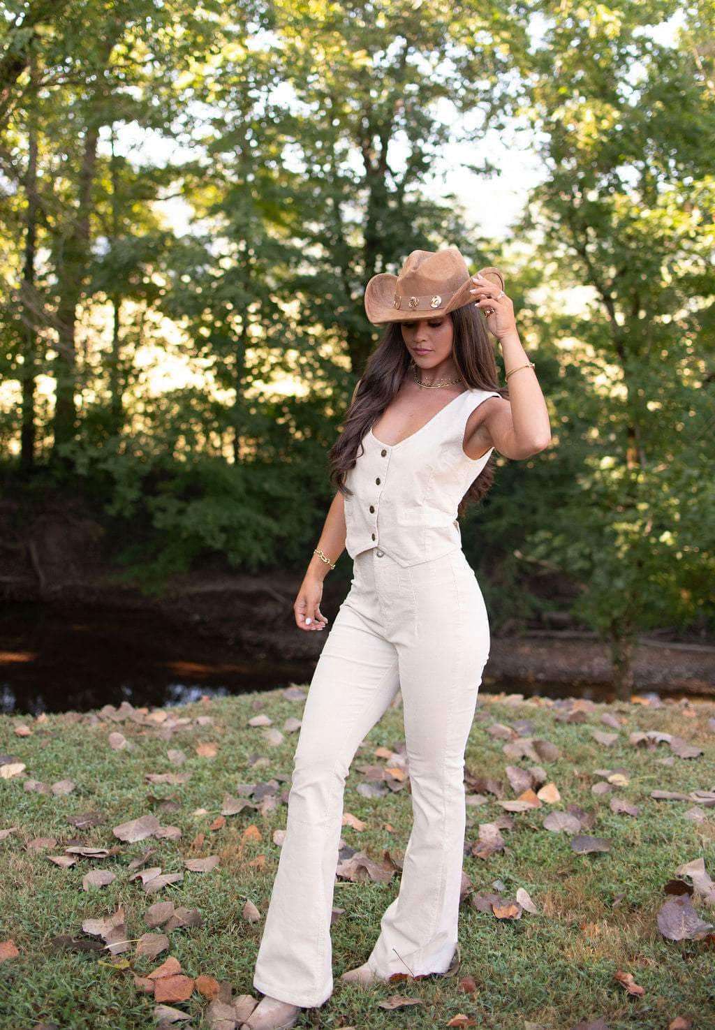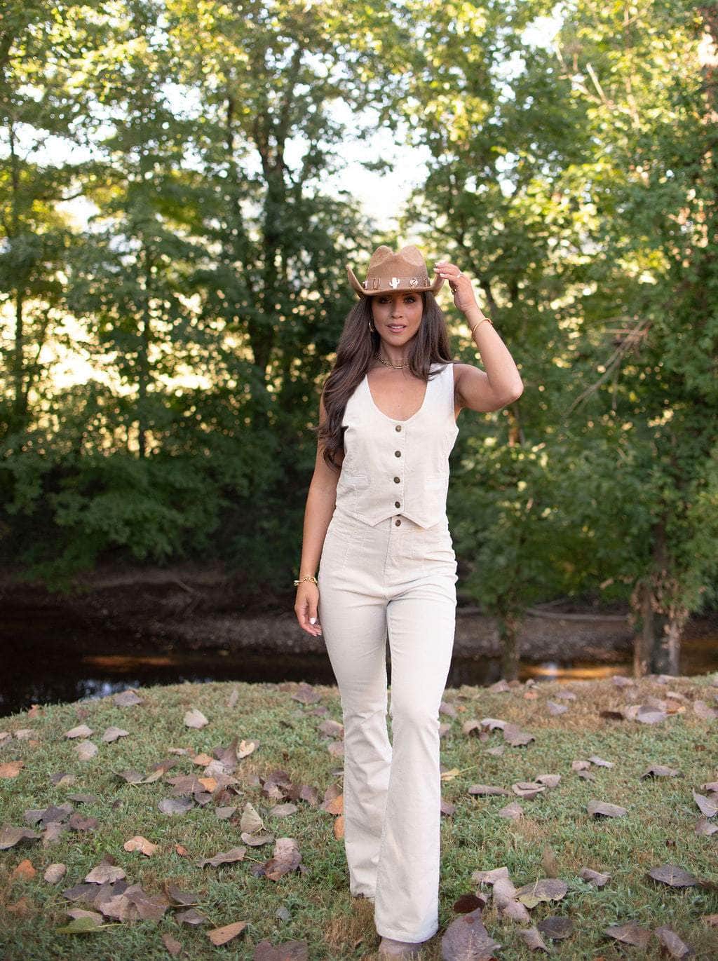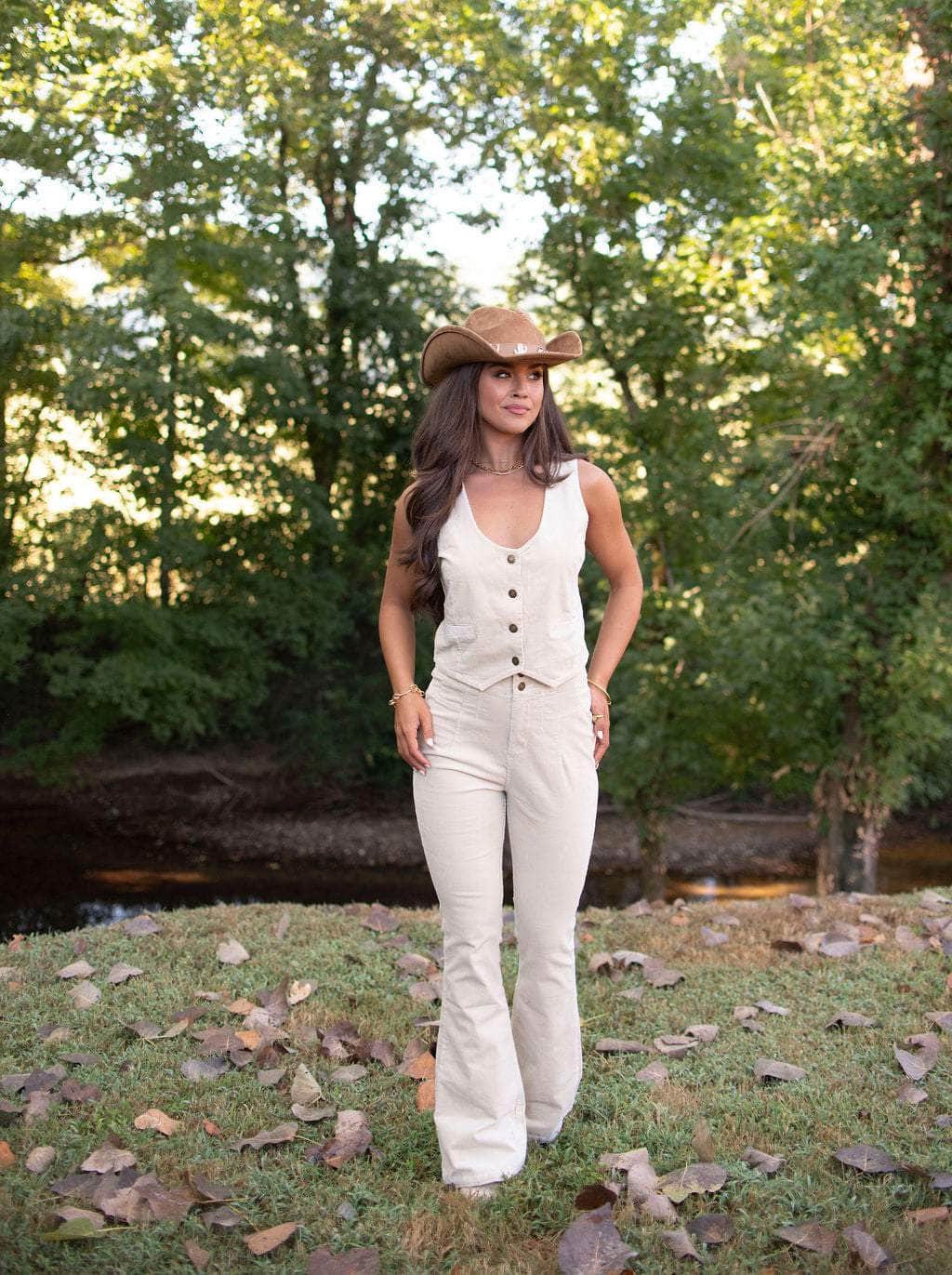 Slip into comfort and style with the Dawns At Dusk Corduroy Pants. Crafted from a super soft cotton blend. these pants feature charming pleated details on the waistband that add a playful twist to your everyday look. The front rise zipper and double loop button closure provide a secure fit with a touch of flair. Perfect for the rodeo or stepping out. these pants bring cozy vibes with a dash of fun.