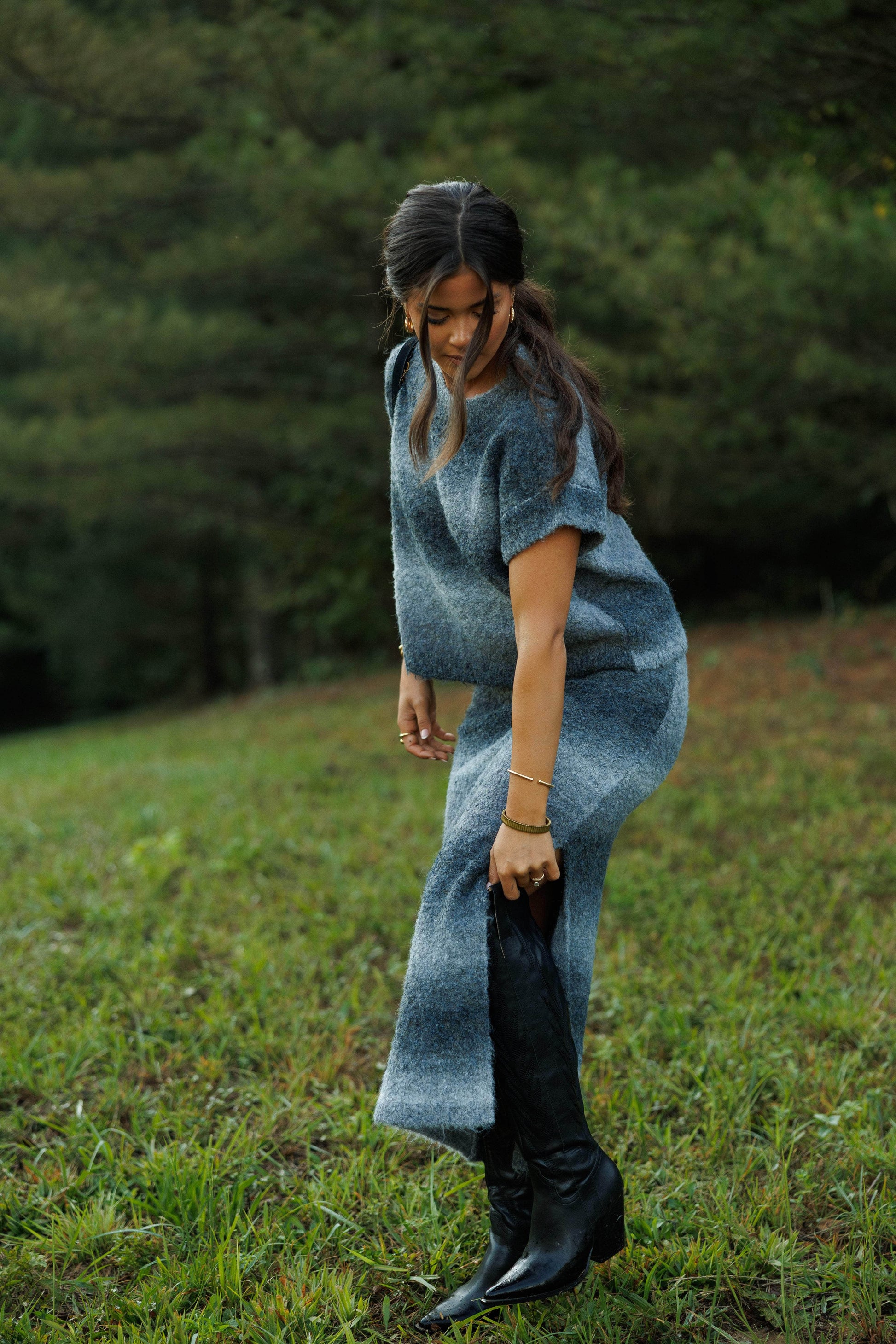 The Demi Ombre Skirt features a stylish side slit. along with an elastic waistband for maximum comfort. Its maxi length adds an elegant touch. while the variegated pattern adds a unique flair. Perfect for any occasion. this skirt is a must-have in any wardrobe.