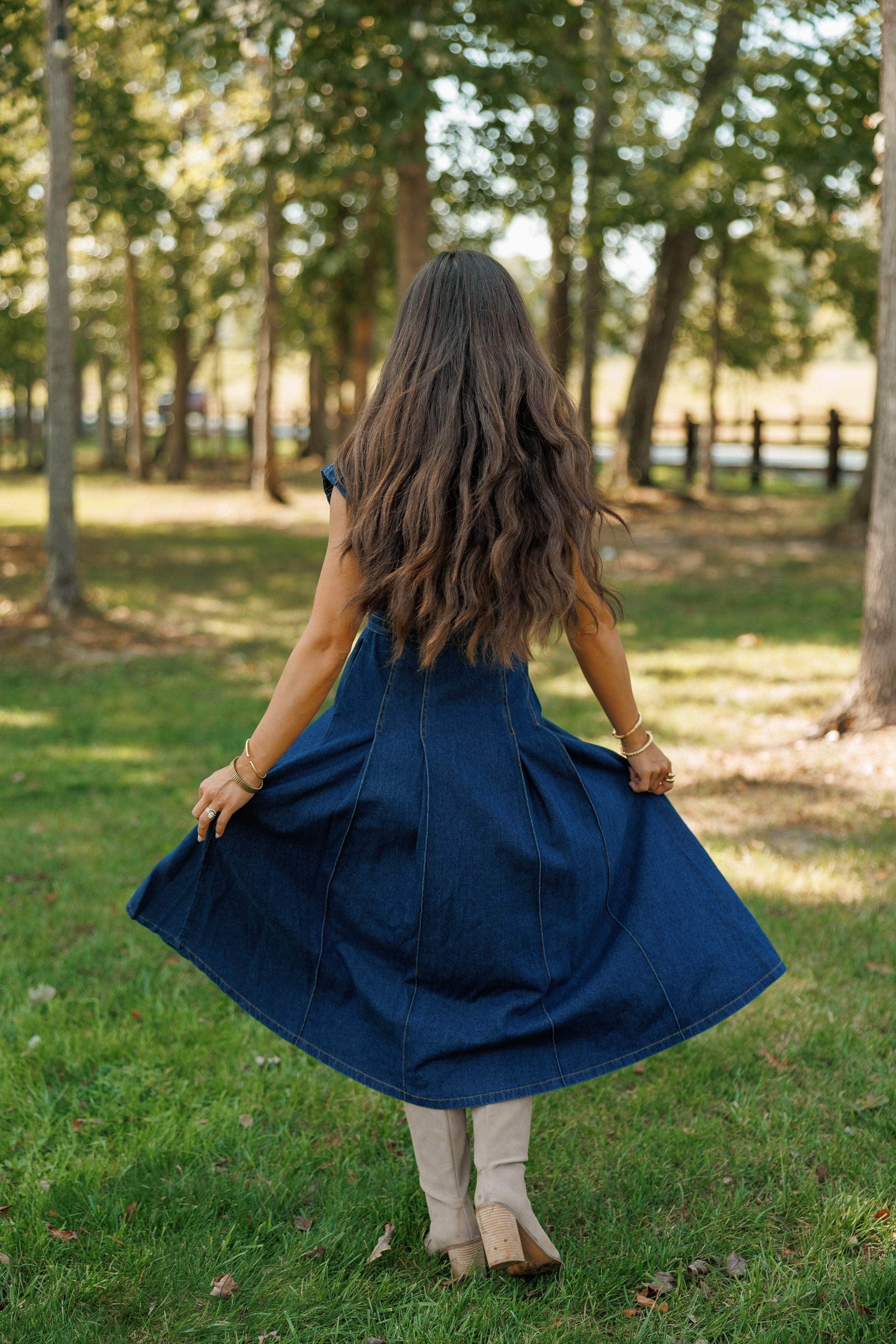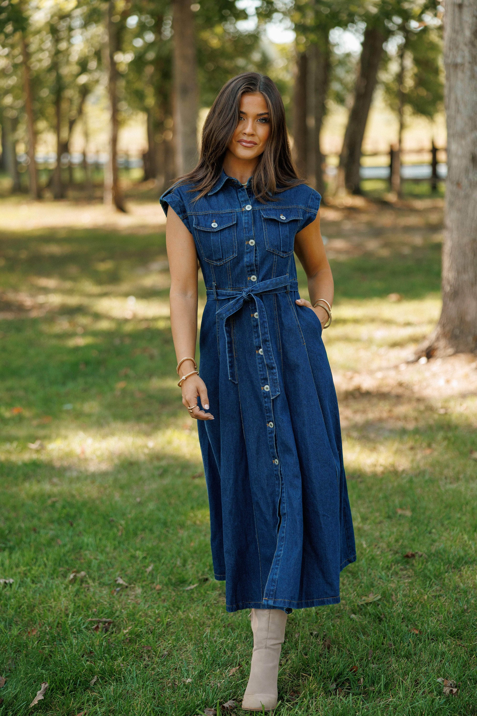 This playful short sleeve denim dress. crafted from a soft cotton blend. brings comfort and style together. It features long pleated accents and shiny silver button closures for a fun. detailed look. Front chest pockets add a touch of casual cool. while the adjustable tie belt lets you mix up your silhouette with ease. Complete with a pointed collar. it's the perfect pick for effortless everyday charm.