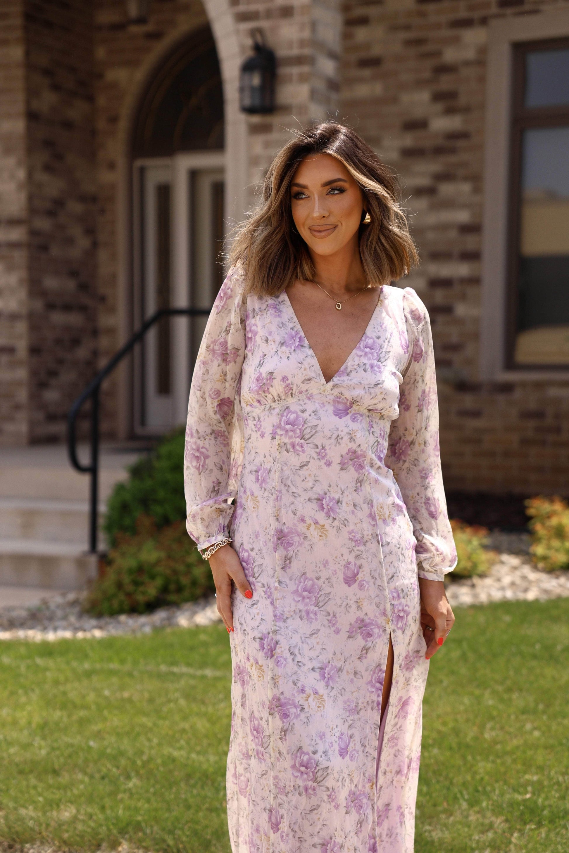 Indulge in elegance with our Serenity Garden Maxi Dress. Featuring a v neckline and balloon sleeves. this dress boasts a delicate floral design and a sheer overlay. The soft inner lining ensures comfort. while the side slit detail and pop of color add an elevated touch. Complete with a back lace up detail. this dress is perfect for formal events. weddings. or a sweet date night.
