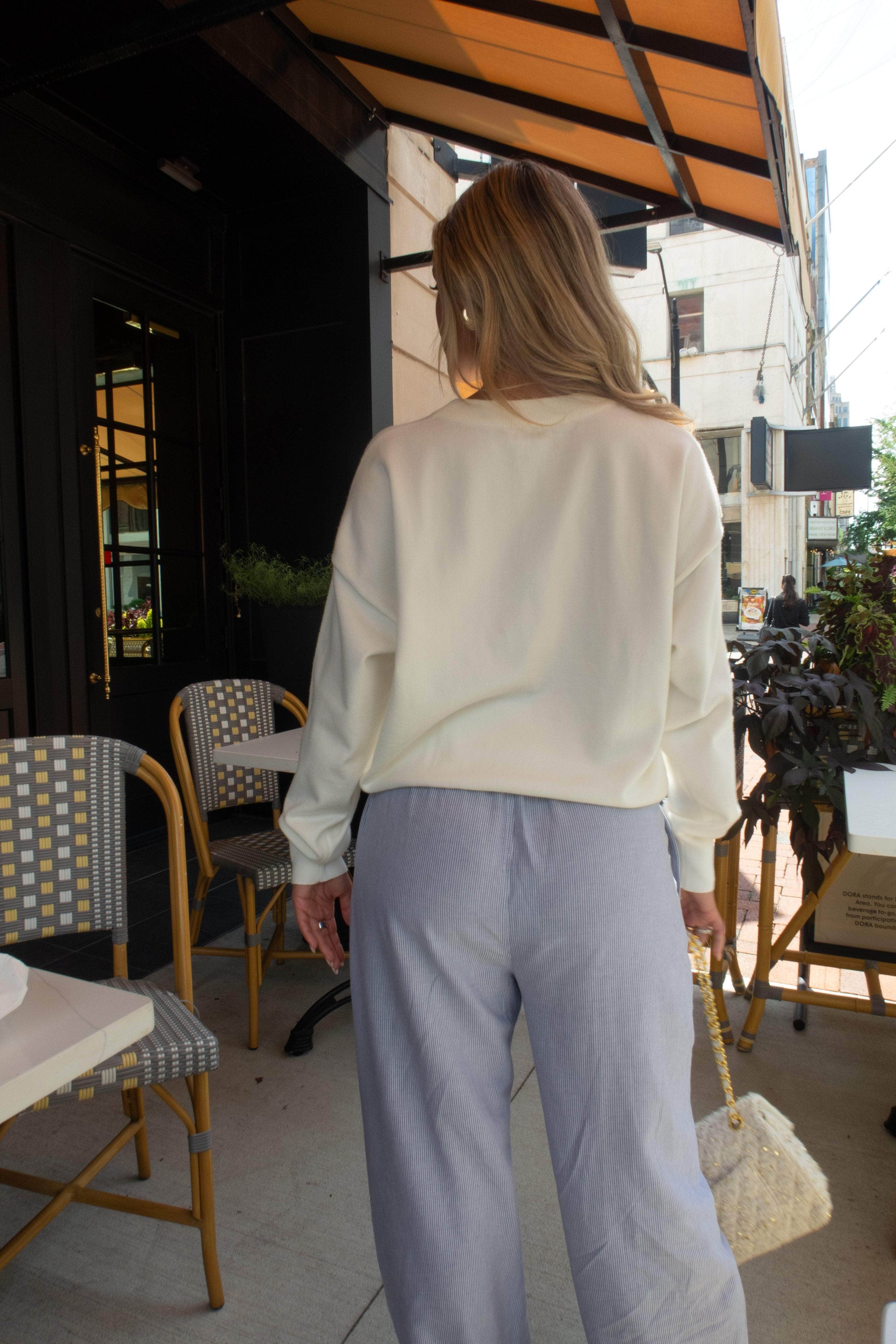 This long sleeve sweater is soft. cozy. and easy to throw on with your go-to denim. Features a cute little puppy graphic for a fun pop. plus ribbed edges and a relaxed fit that keeps it comfy all day. An effortless layer for cooler days.