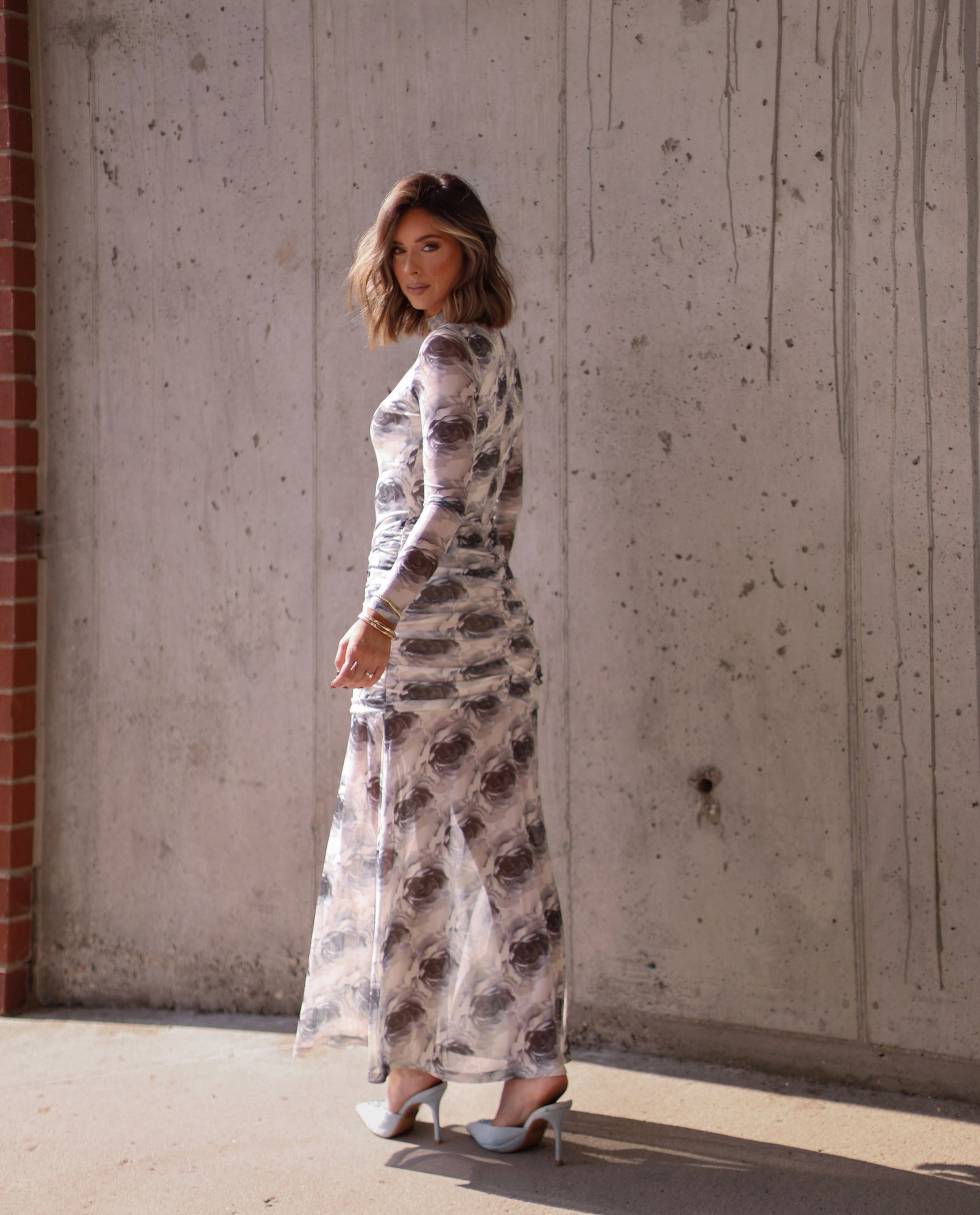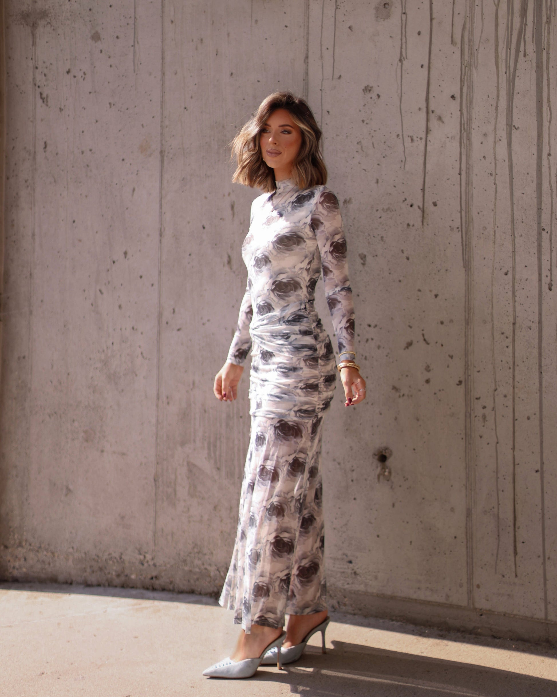 Feel elegant and flirty in our Endearing Elegance Dress. This long sleeve dress features a grey floral pattern. perfect for any fancy occasion. The flattering fit is sure to make you feel confident and beautiful. Get ready to turn heads!