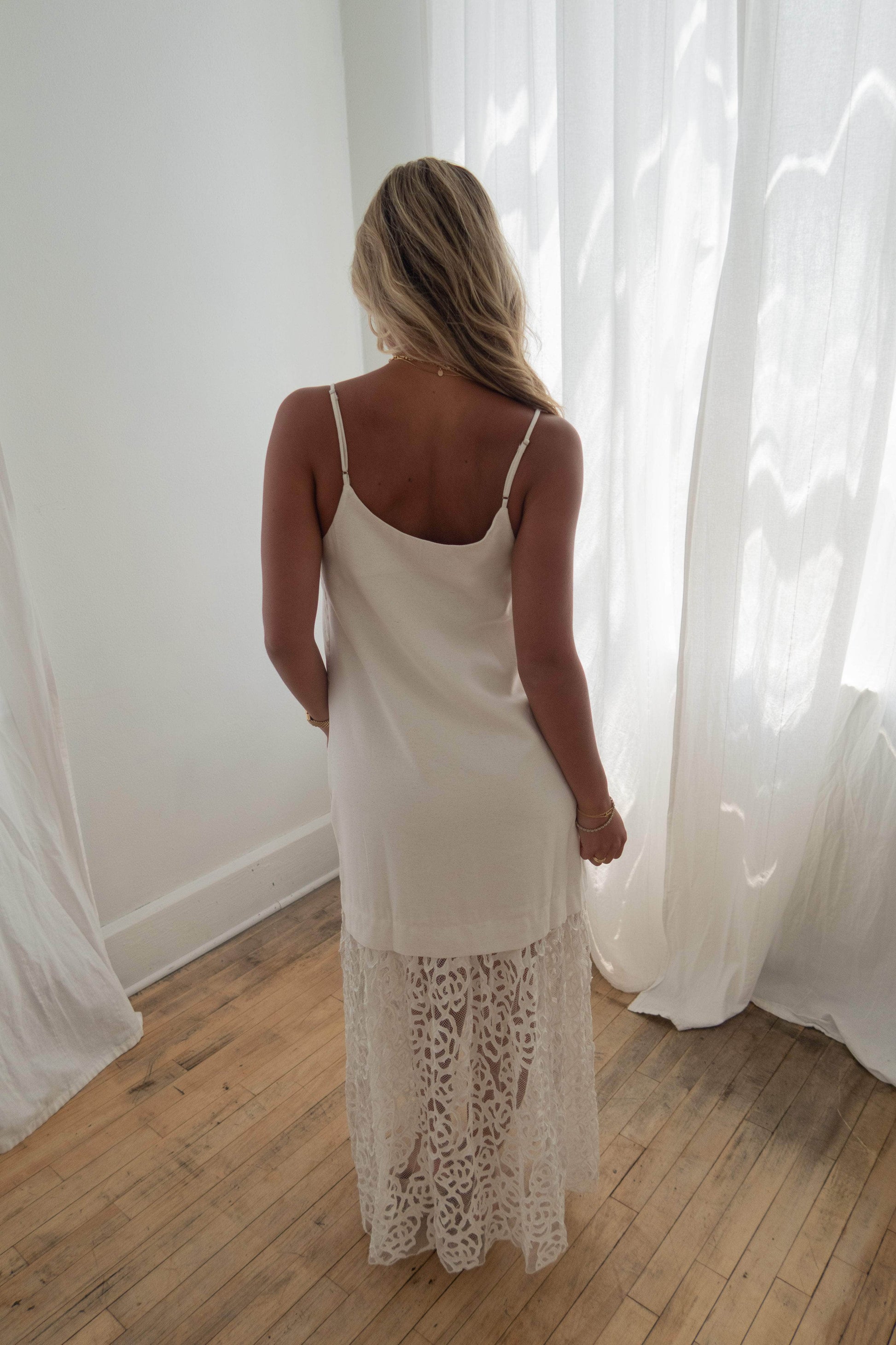This linen-cotton blend midi dress feels just right with a slightly weighted fabric that drapes beautifully. Featuring adjustable shoulder straps and a wide collarbone neckline. it's both flattering and comfortable. The underarm side zipper with a top stop makes for easy wear. while the delicate rosette detail adds a subtle touch of charm. Perfect for everything from brunch dates to sunny strolls.