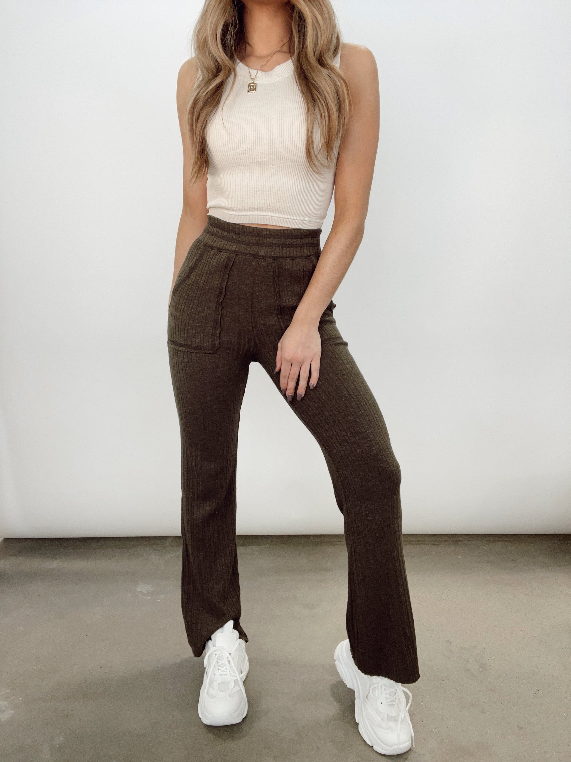 Comfortable and stylish is our favorite combo in Lane 201's So Chill Jogger! This pant features a super soft and stretchy ribbed knit material. a stretchy elastic waistband. pocket details. a raw hem. and a high waisted straight leg fit. This pant fits true to size. The perfect piece to pair with a cute basic for a super cozy look!