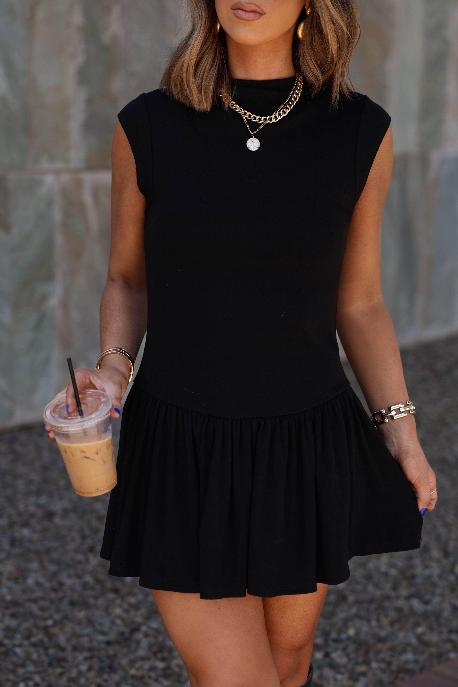 Elevate your style with our Made To Move Dress. The sleek black design. flare cut. and sleeveless mock neck add modern sophistication to any look. Make a statement and feel confident all day long.