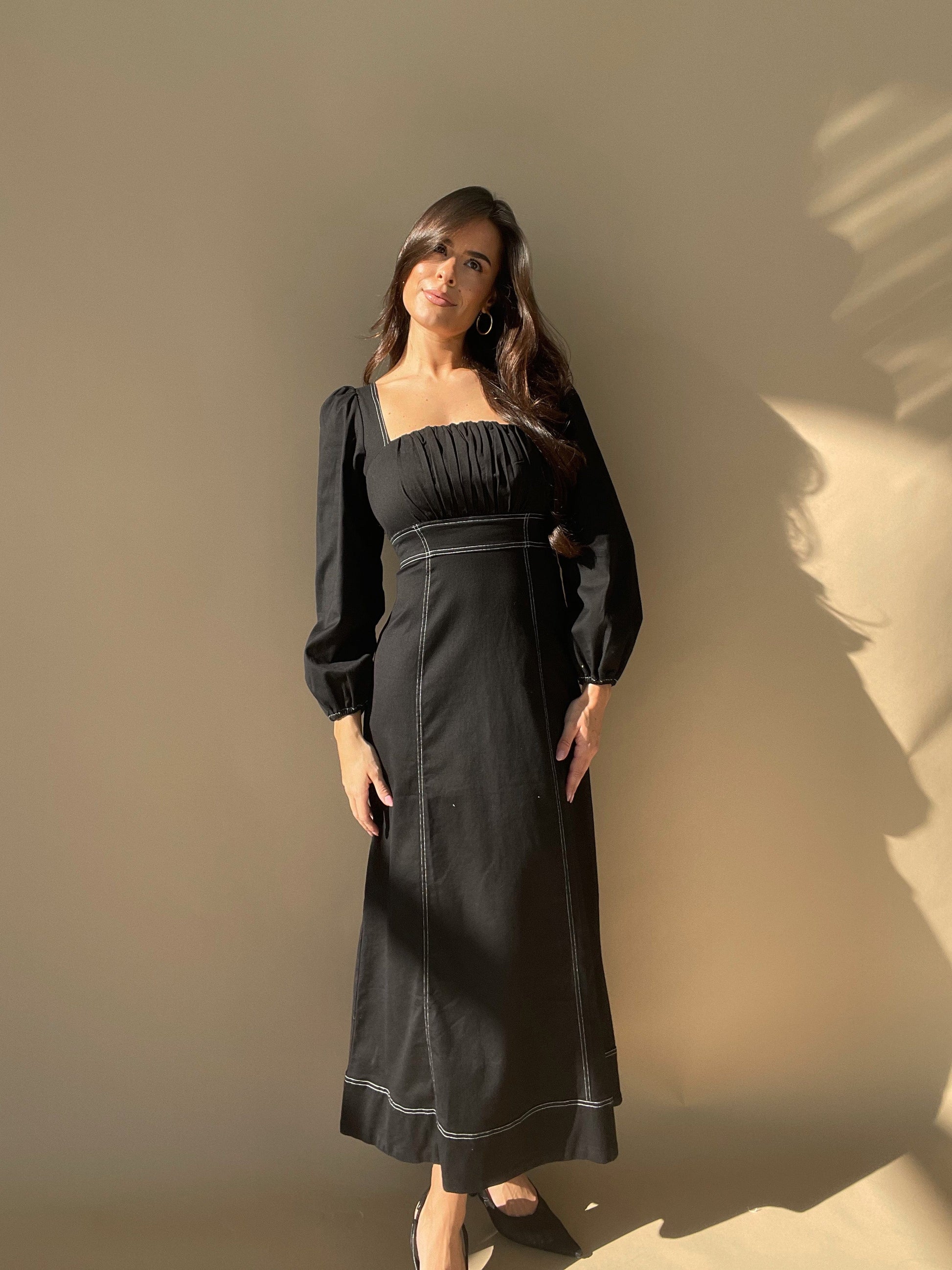 Introducing the Meredith Maxi Dress. Embrace your whimsical side with this long-sleeved dress that exudes cottage core charm. Perfect for a romantic evening out or a bohemian-inspired event. Enjoy the flowy silhouette and channel your inner enchantress.