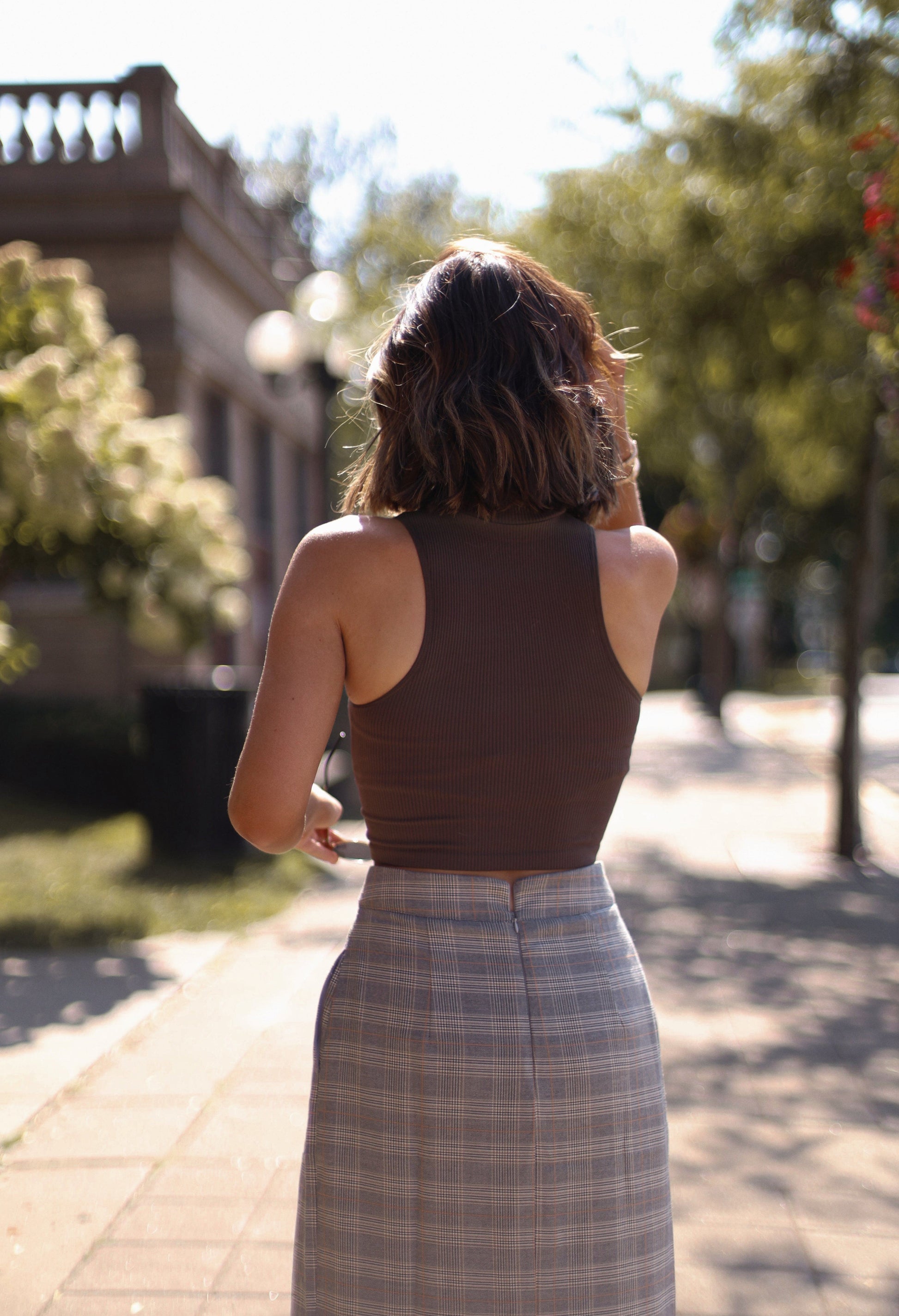 The Lane 201 Myla Tank is a basic everyone should have! This is a sleeveless cropped tank with a ribbed turtleneck. Pair with gold jewelry + some sunnies for a basic but trendy look.