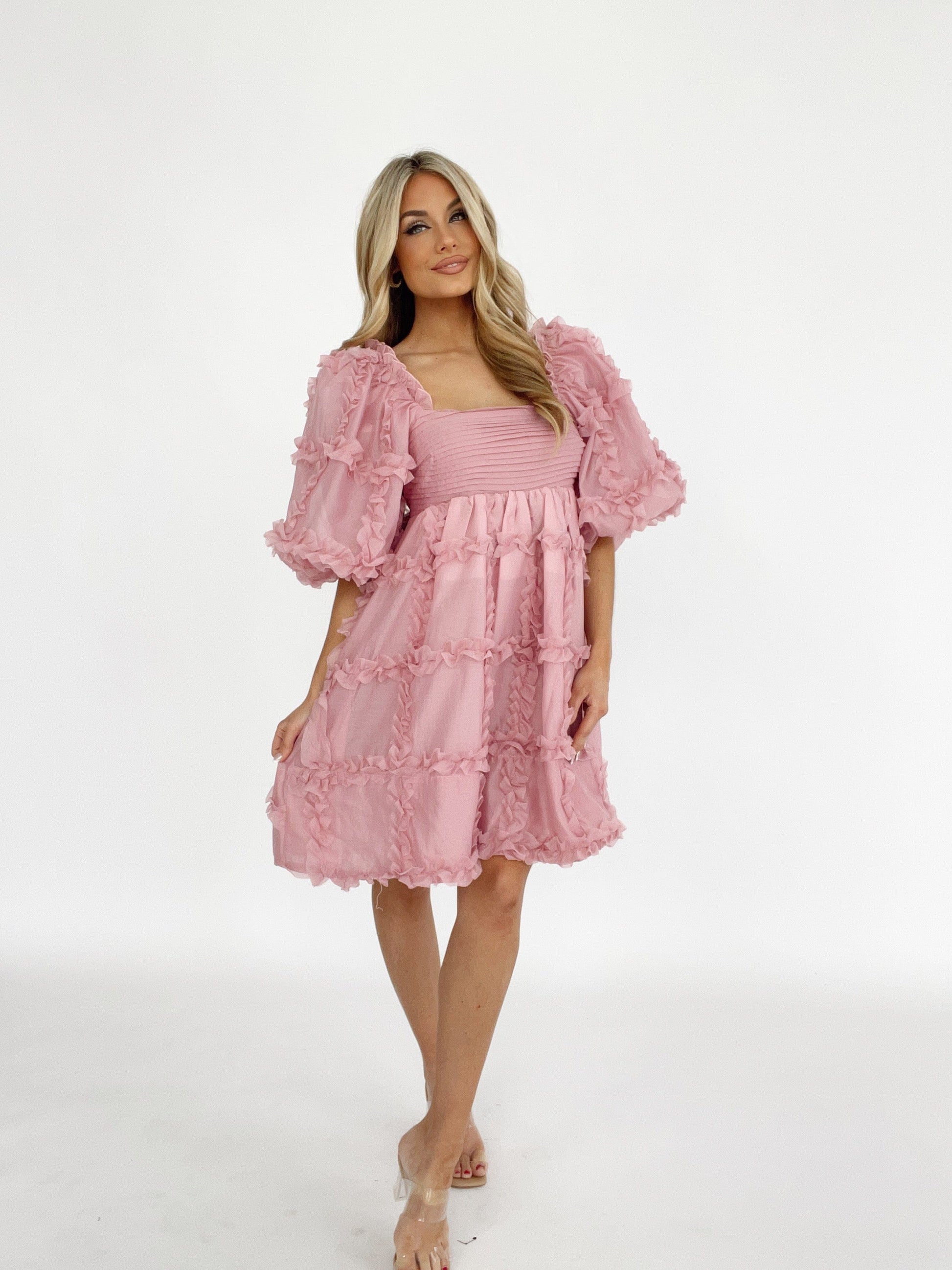 The Peony Party Dress is a statement piece for any garden party. wedding guest. or elegant event. Its textured fabric. square neckline. and puff sleeves elevate the chic factor. while the mini fit and back tie detail add a touch of sophistication. This dress is the perfect pop of color for your spring and summer wardrobe and offers a soft and luxurious feel for any dinner. drinks. or brunch occasion.