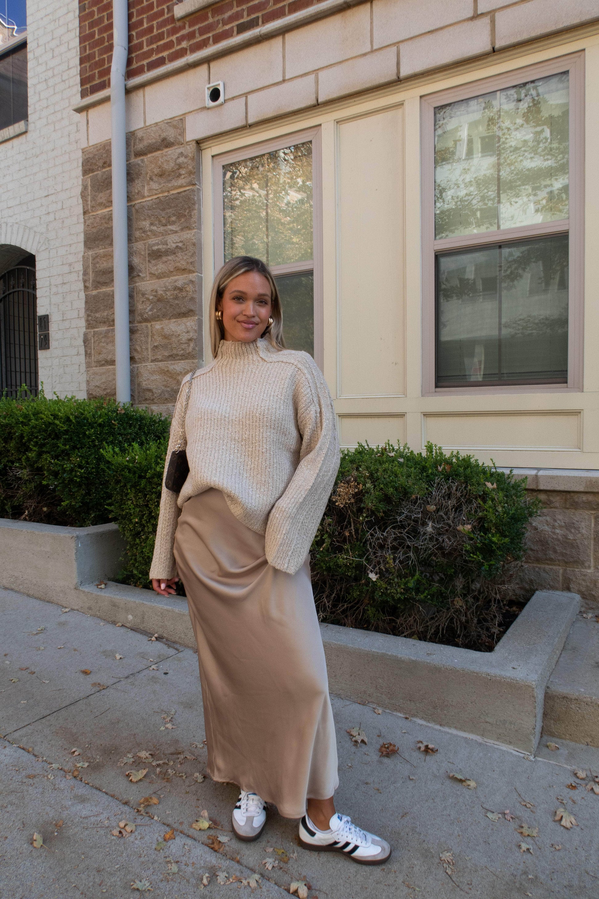 Cozy meets cute with this soft knit sweater. featuring a fun textured fabric that adds a little extra flair. The relaxed fit and cheeky mock neckline make it perfect for effortless style and comfort—whether you're lounging or out and about. you'll feel as good as you look!
