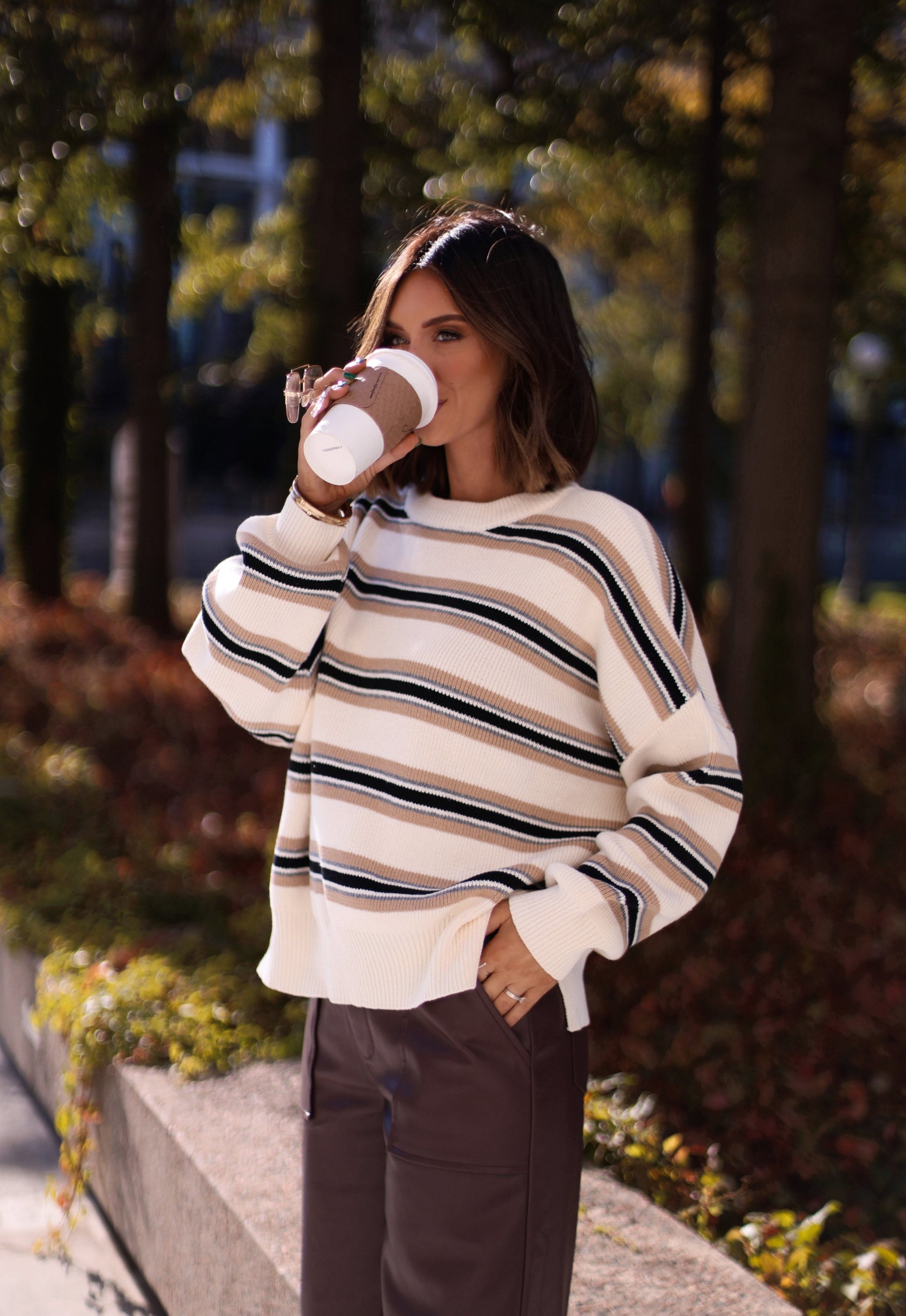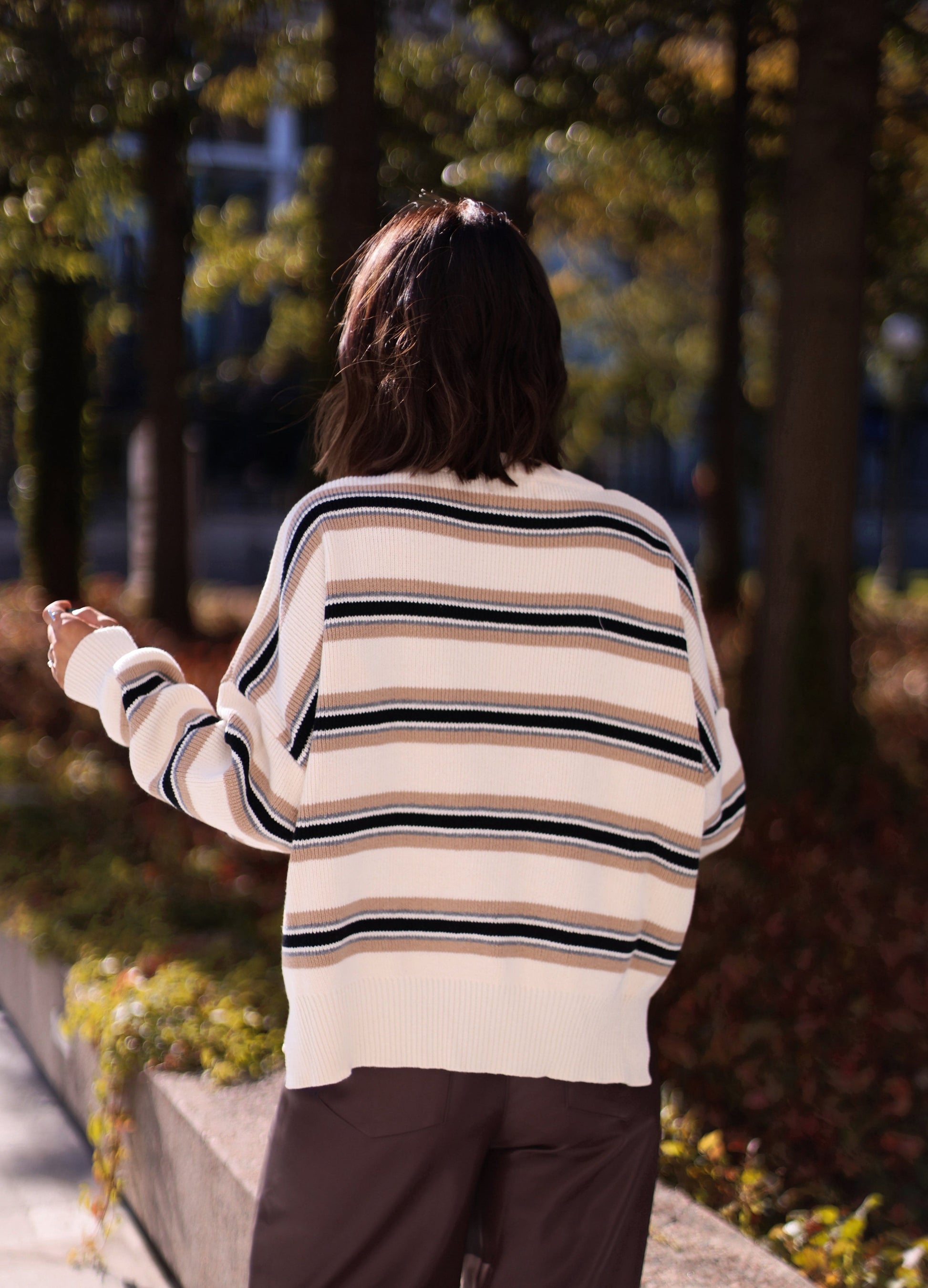 Discover the perfect blend of fashion and function with our Sierra Striped Sweater. Made with high-quality materials. this basic sweater offers a touch of style with its classic striped design. Add versatility to your wardrobe with this must-have piece.