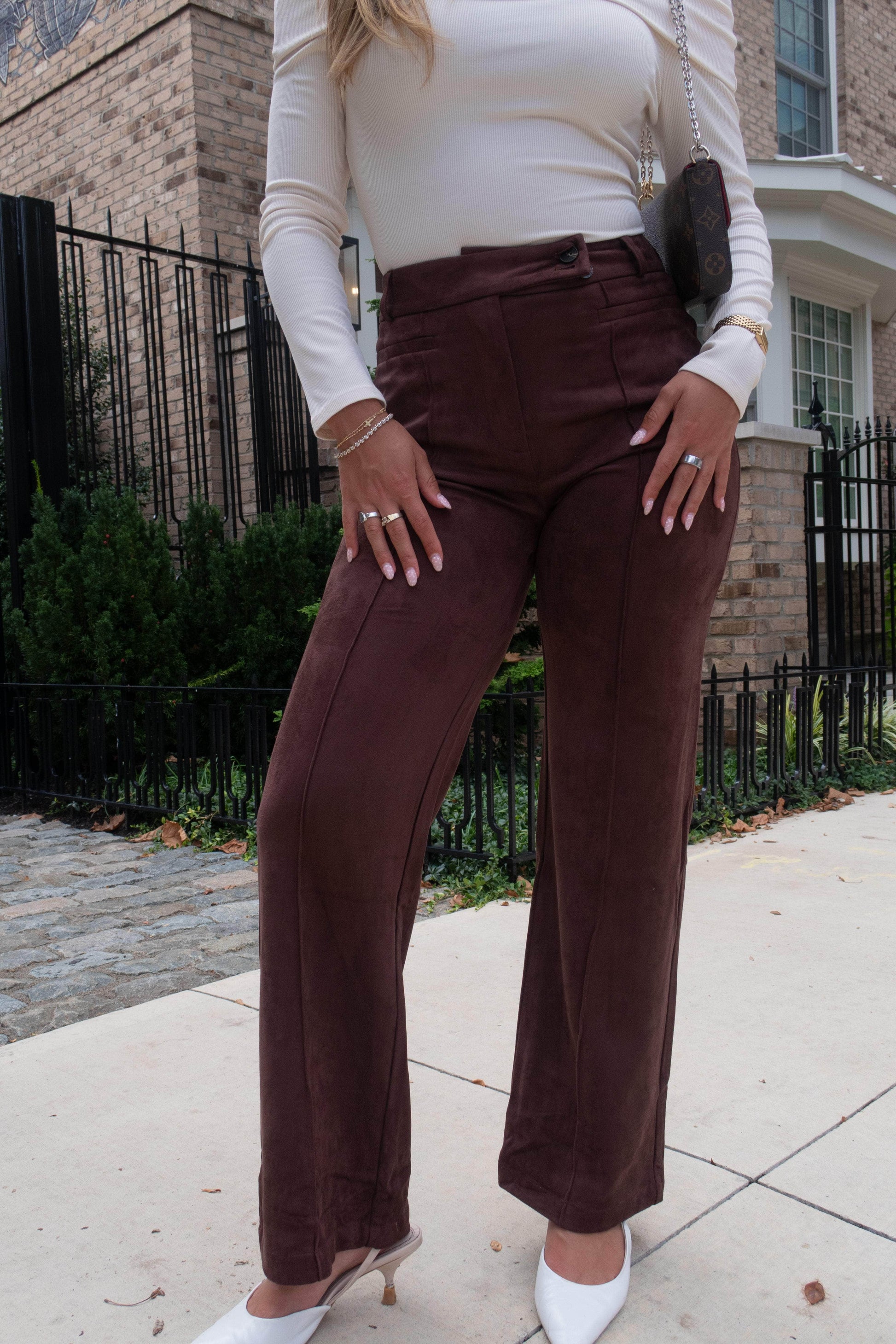 These Swayed In Style Pants Pants are made of soft suede and are expertly fitted for a fashionable look. The button closure. unique seam detailing and front pockets add a touch of classic charm. Look stylish and feel comfortable in these pants.