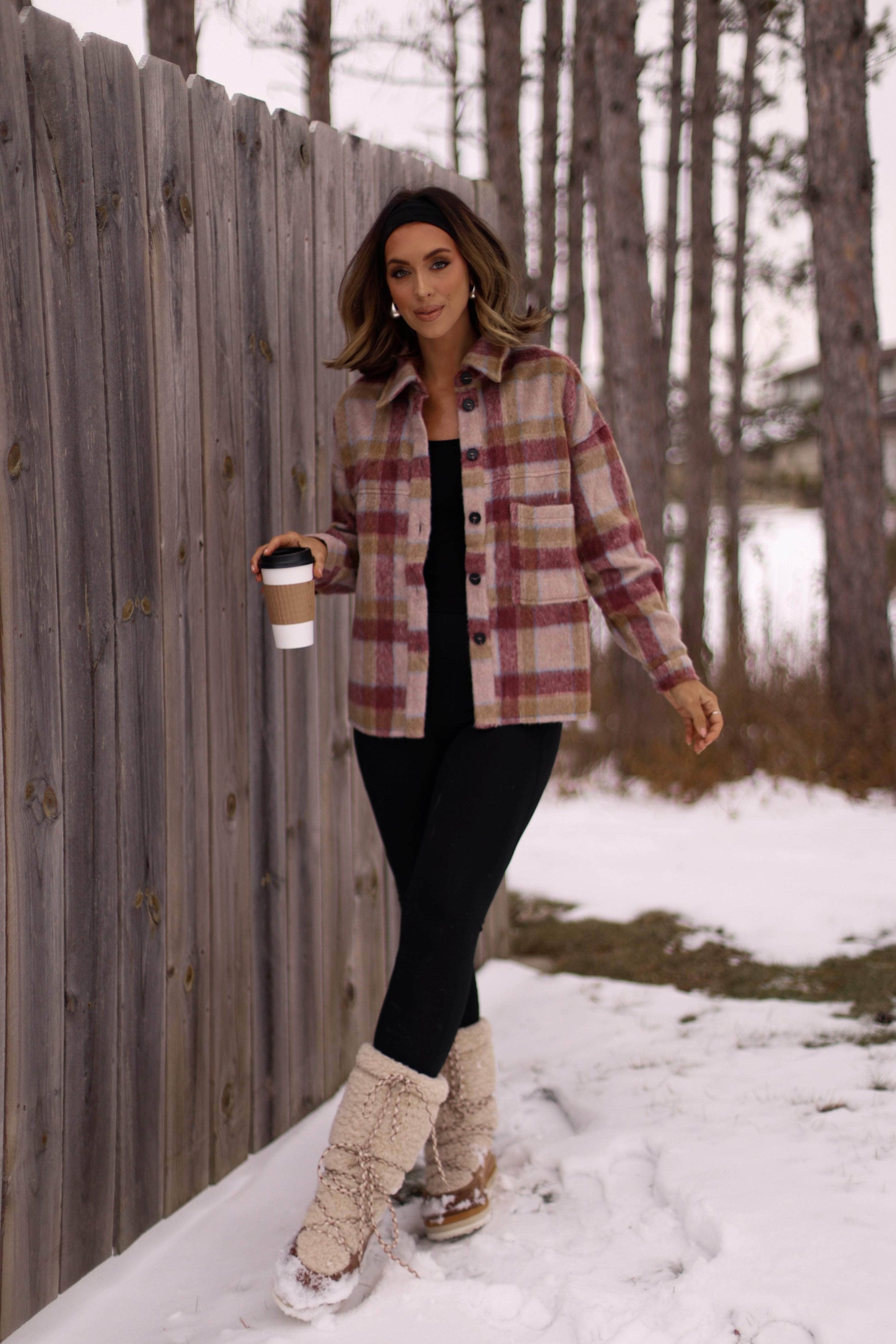 Our Take It Outside Jacket is perfect for the cooler seasons. crafted with a luxurious. fuzzy material that's warm and cozy yet still maintains an elevated. neutral look. Pocket details. button closures. and a rounded hem make it a versatile essential for brunch. dinner. or shopping in the fall and winter. Our classic staple is trendy and comfortable for all your outdoor activities.