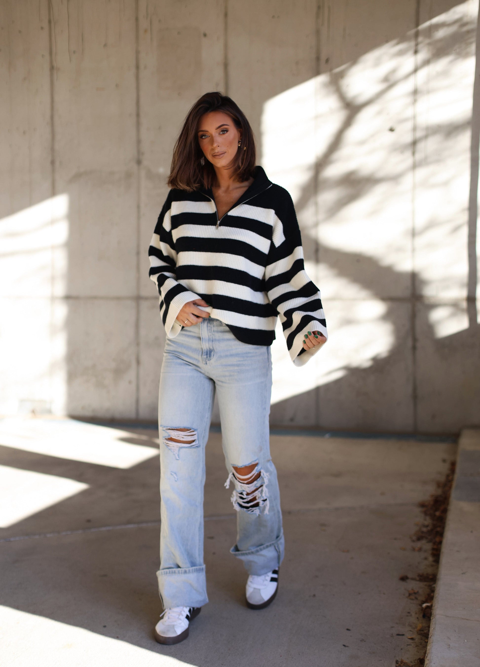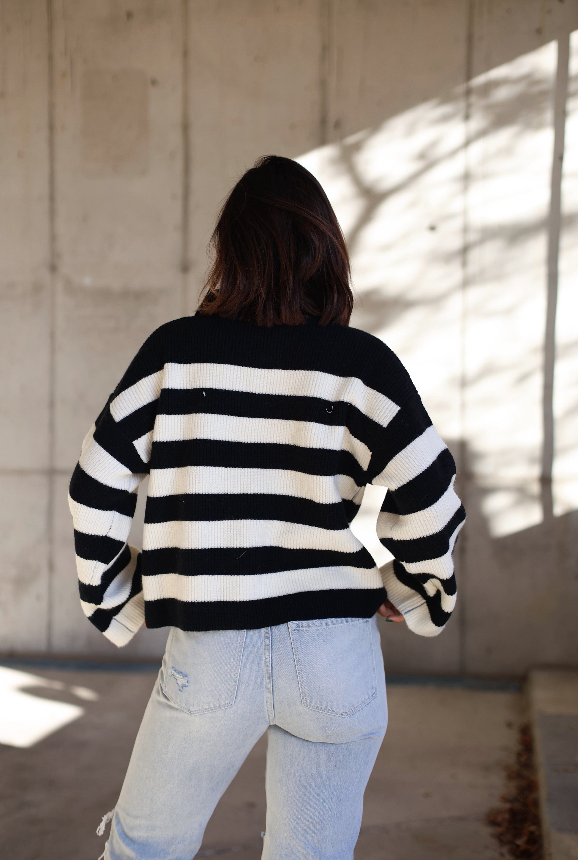 This Timeless Cozy Sweater offers a classic striped design with a zip-up front and wide. long sleeves. providing both style and convenience. The loose fit ensures all-day comfort. making it perfect for any occasion. Elevate your wardrobe with this versatile and timeless sweater.