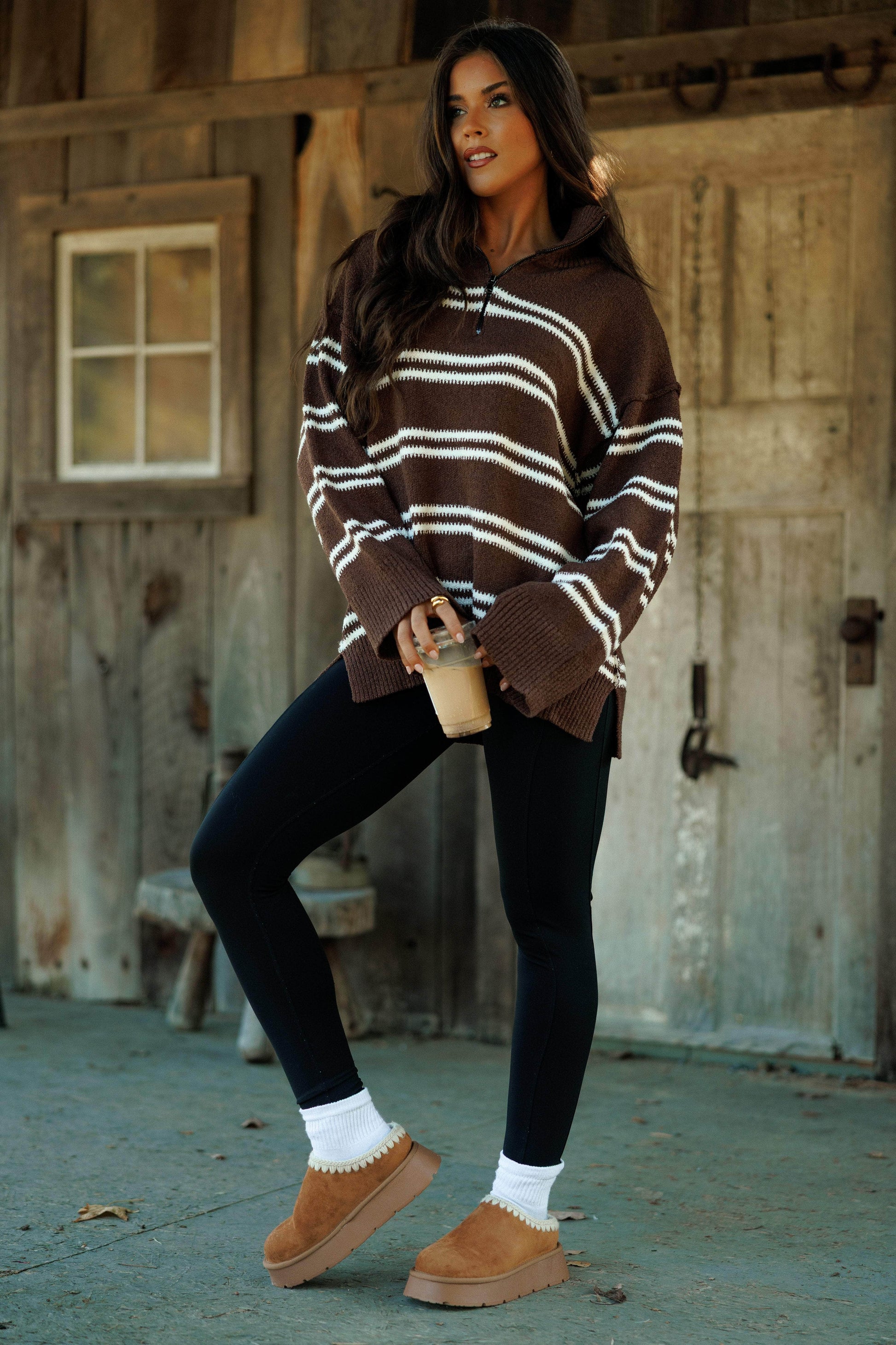 Cozy up in the Cozy Lines Pullover. your new go-to for effortless comfort. Its soft knit fabric and ribbed cuffs and hem add texture and charm. while the front zipper lets you play with your look. Stretchy and relaxed. this sweater moves with you all day long—perfect for laid-back vibes with a touch of fun.