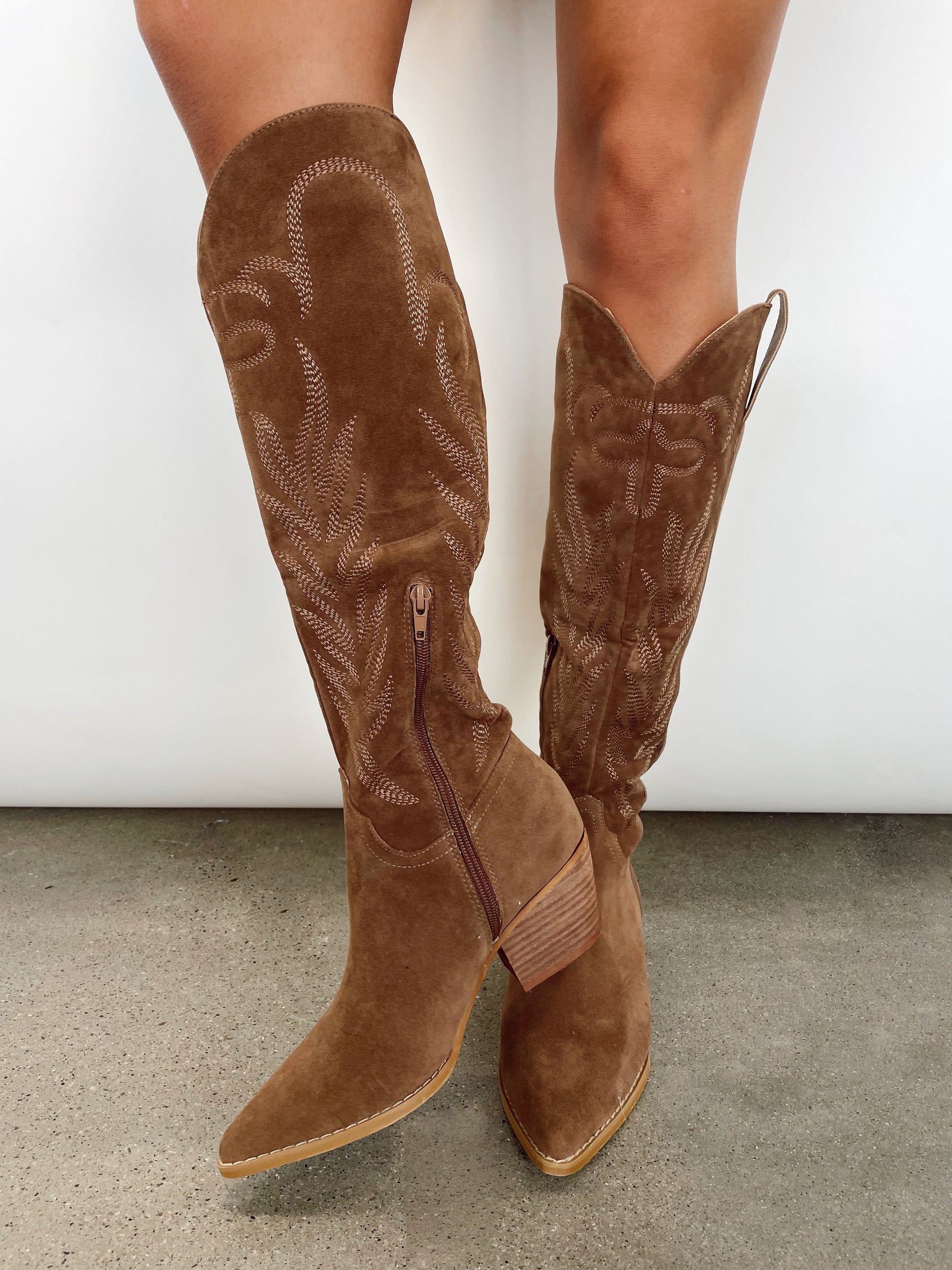 Broadway is calling in Lane 201's Wild Wild West Boot. These boots feature a comfy suede material. a zipper closure. beautiful embroidery detailing. and they fit true to size. The perfect boot to spice up your fit for a night out in Nashville!